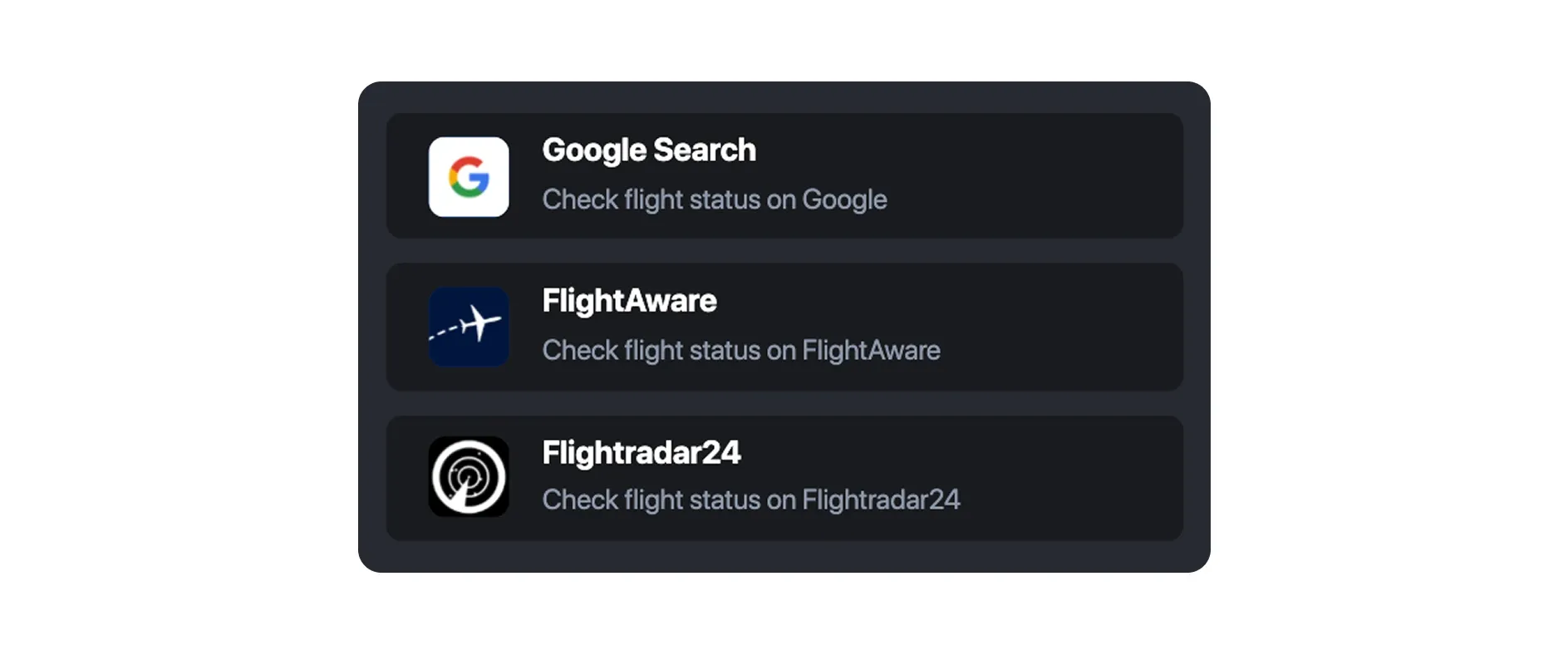 • Quick flight lookup tools (Google Flights, FlightRadar, FlightAware)